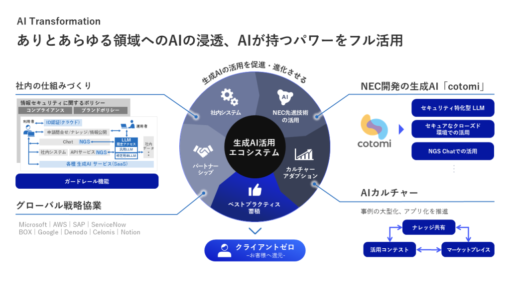 Atsushi I.:社内業務で安全・安心に使えるよう、NECグループの「AI と人権に関するポリシー」「企業秘密管理規程」「情報セキュリティ基本規程」など、社内規程を遵守することに同意した社員だけが利用できる環境を整備しています。
