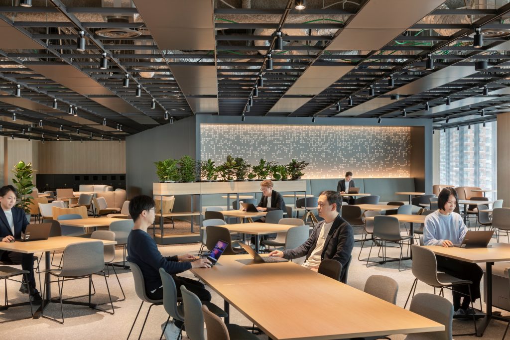 Masayuki O.:当時の玉川事業場におけるオフィスの大半は、出社を前提にした個人デスクワーク中心の固定席の設計となっていました。そのため、業務内容に応じて最適な場所を自律的に選ぶことが難しく、個人の作業とチームでの協働を柔軟に切り替えにくい環境でした。結果として、組織を超えて人と人が自然につながる機会が限られてしまっていたのです。