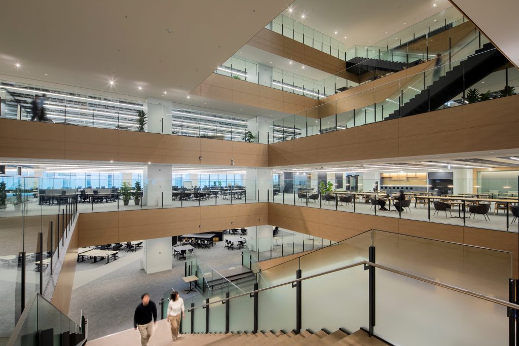 デザイン性や開放感の追求に加え、安全性やサステナビリティにも配慮。働く場所としての機能を最適化するため、細部に至るまでファシリティマネジメントの知見が活かされています。