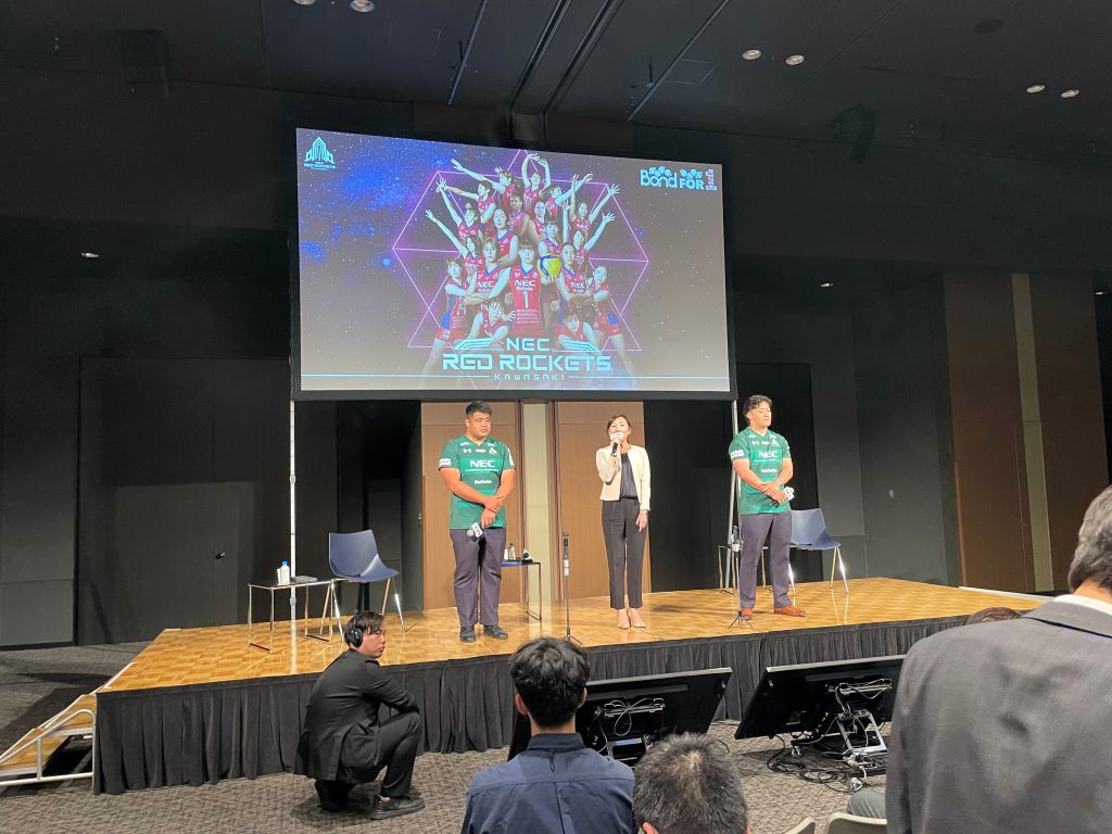お昼休憩には、男子ラグビーチームや女子バレーボールチームで構成するNECロケッツによるスペシャルコーナーを開催