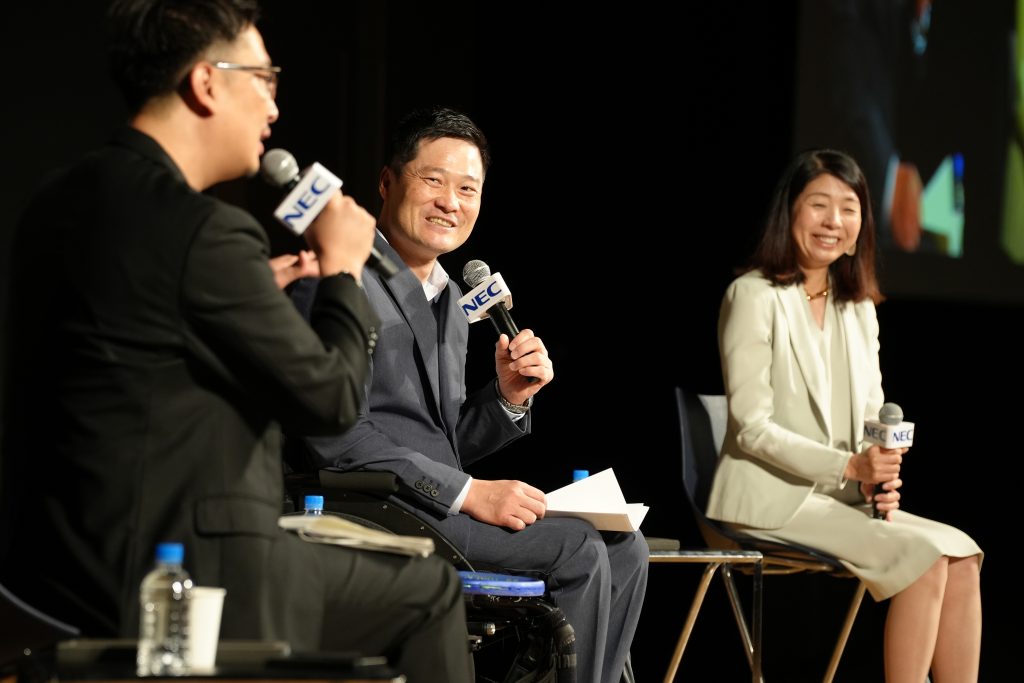 スポーツの世界で前人未到の記録を打ち立ててこられた国枝さんと、ビジネスの世界で数多くの挑戦を重ねてきたNEC CHRO長田。一見異なる環境を歩んできた二人ですが、「自分のやりたいこと」と向き合うマインドなど、共通点も多く、新入社員にとって示唆の多いセッションとなりました。