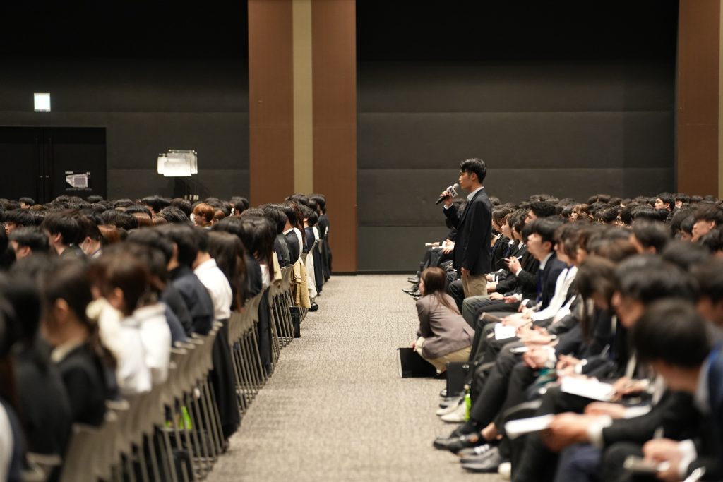 当日は、NEC 取締役 代表執行役社長 兼 CEO森田、NEC 執行役 Corporate EVP 兼 CHRO長田、そしてNECとパートナーであり車いすテニス界の世界的レジェンド・国枝慎吾さんにご登壇いただき、新入社員がNECグループと真剣に向き合い、未来への挑戦に向けて「OneNEC」のマインドを育む一日となりました。